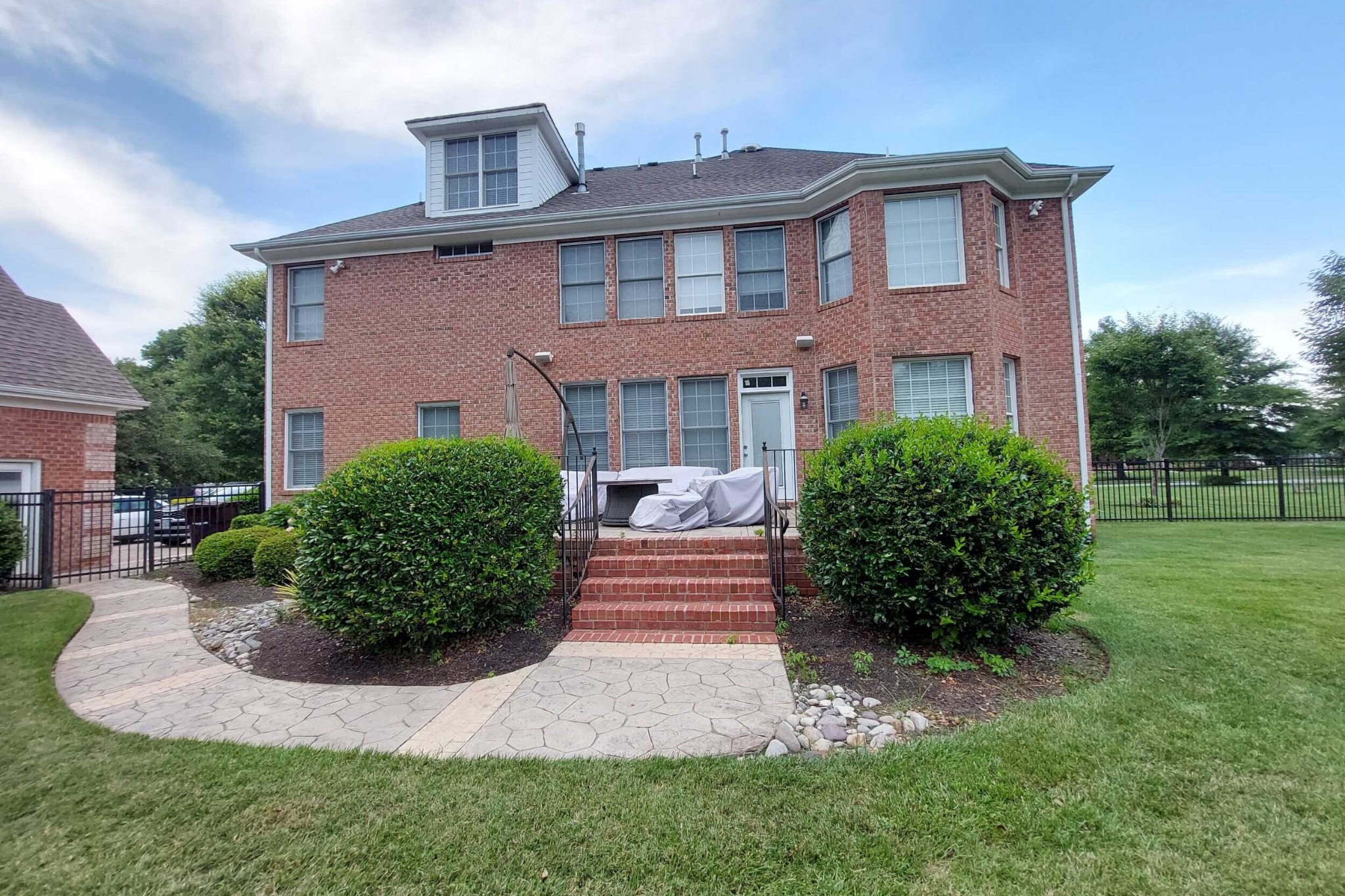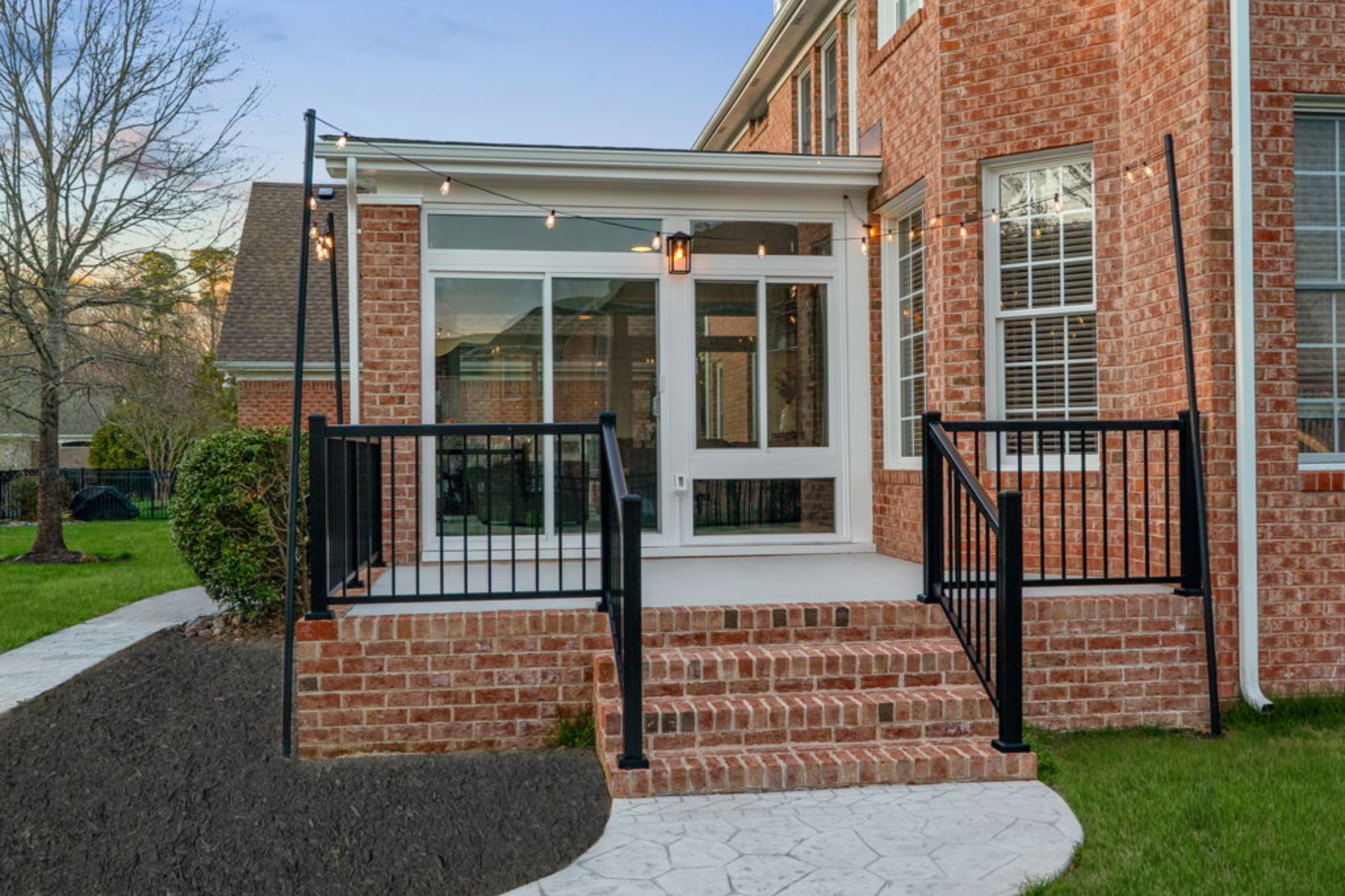 • Brick steps and columns designed to match the home’s aesthetic